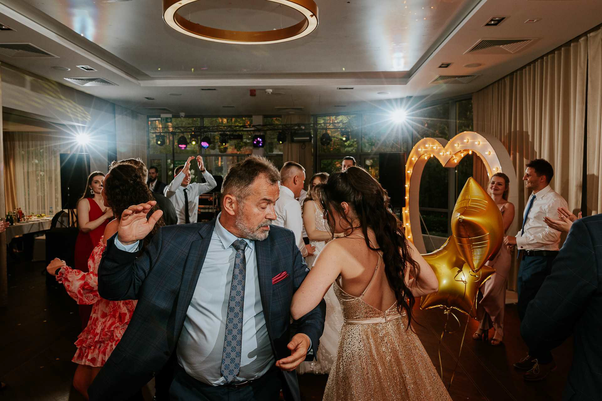 Uwielbiamy fotografować zabawę weselną! To najdłuższa część dnia, pełna wyjątkowych sytuacji i momentów ślubnych! U Juli i Bartosza zabawa była wyjątkowo szalona! Za oprawę muzyczną zadbał zespół Armagedon oraz Pod Latarnią, czyli nasza znajoma firma zajmująca się oprawą wizualną na przyjęcia weselne! Niesamowity klimat imprezy w dużej mierze tworzą goście i ojejku... rodzina Juli i Bartosza to prawdziwa petarda, co tam się działo, zobaczycie na zdjęciach, ale powiedzieć, że było rewelacyjnie, to jak nic nie powiedzieć!