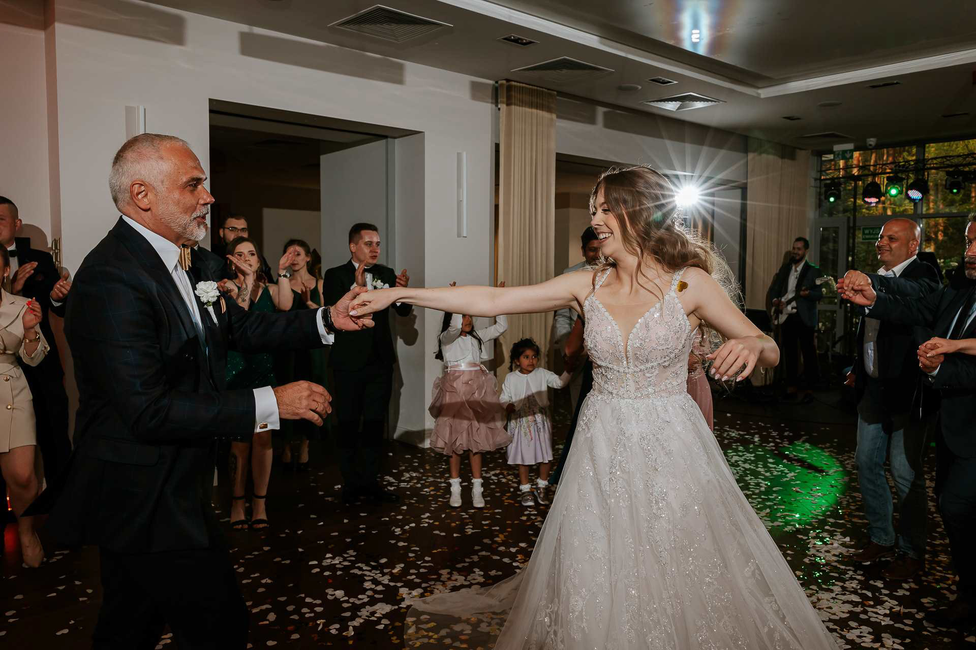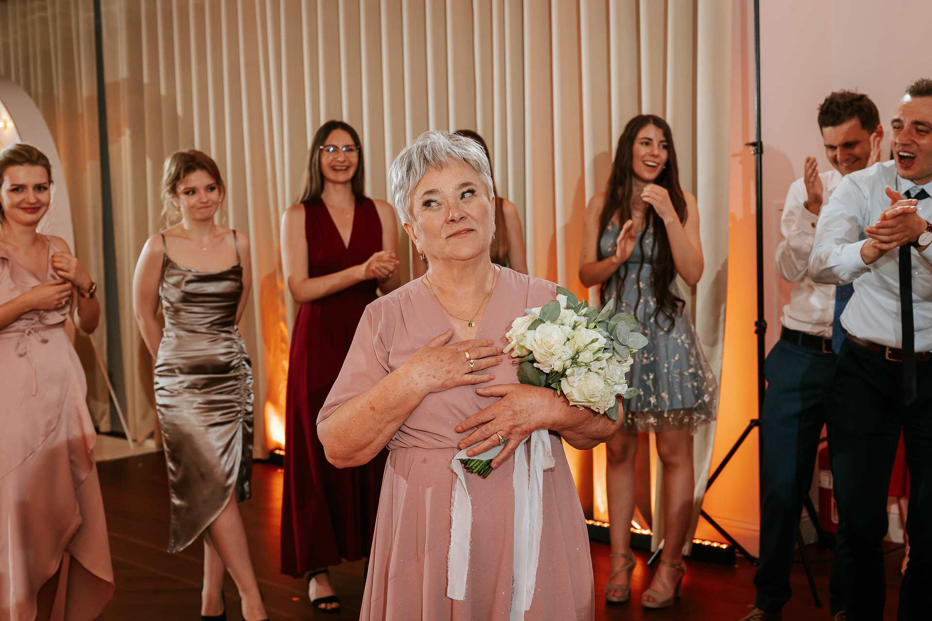 Oczywiście nie zabrakło tradycyjnych momentów, takich jak bajeczny pierwszy taniec ze spektakularnym konfetti, uroczyste podanie tortu. Tutaj wyrażamy uznanie dla Mascarpone Cake za naprawdę wyśmienity tort! Bajeczne oczepin z nieoczywistym, ale naprawdę wybornym zakończeniem rzutem bukietem ślubnym - sprawdźcie sami na końcu wpisu!