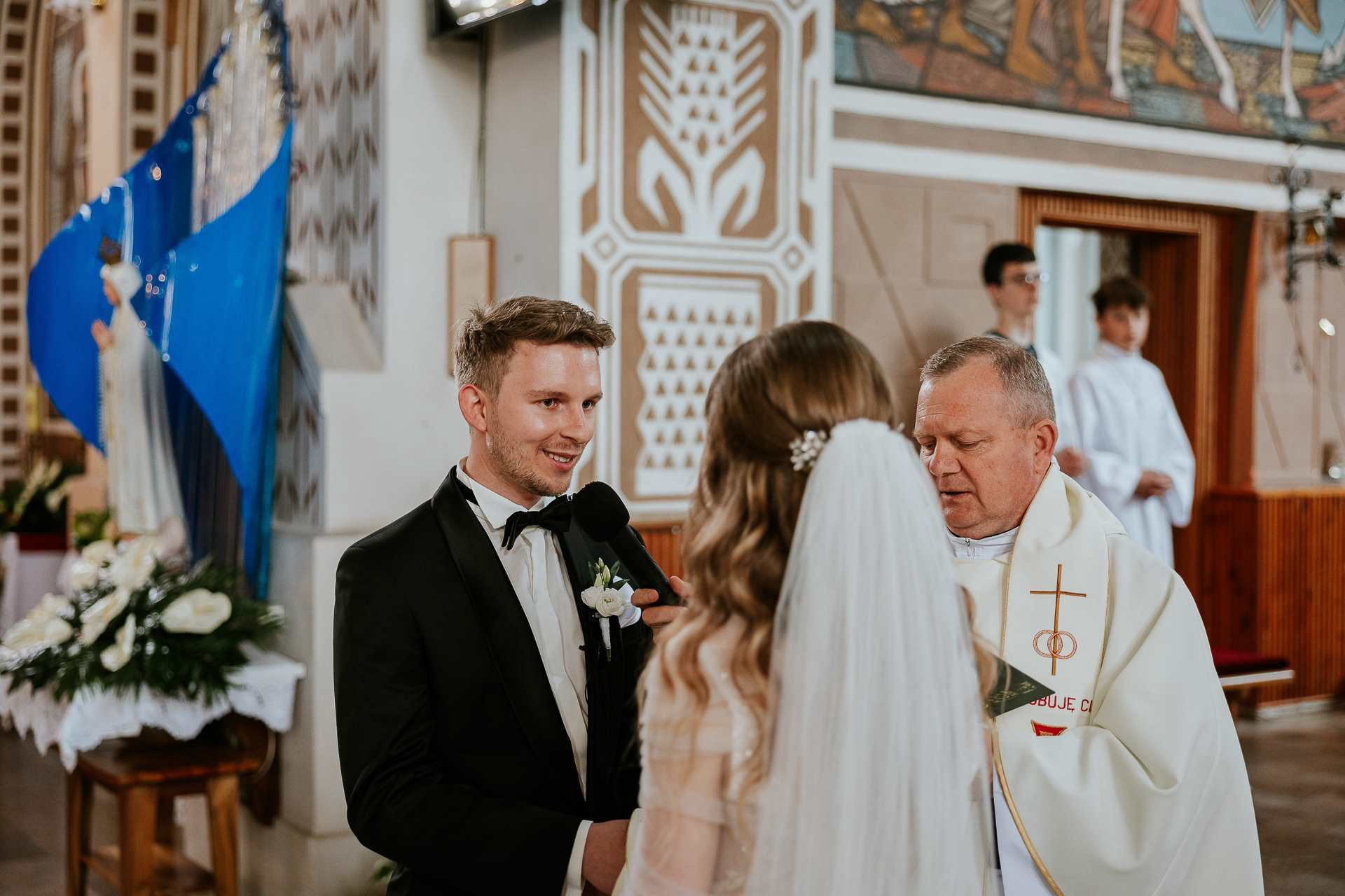 Ceremonia ślubu odbyła się w Rzymskokatolickiej Parafii pw. Przemienienia Pańskiego w Masłowie. Bardzo cenimy to miejsce za przestronne wnętrze oraz piękne naturalne światło, idealnie oddające naturalne kolory! Za dekorację kościoła oraz sali zadbała niesamowita firma VIP Dekoracje.