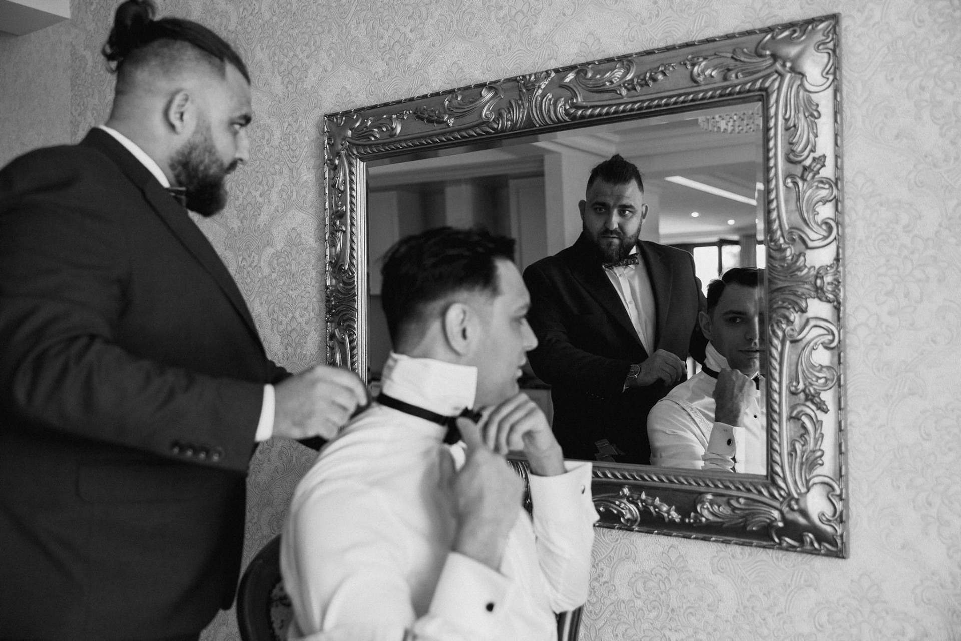 Przed ceremonią mieliśmy także czas na mini sesję ślubną w eleganckich wnętrzach hotelu, które idealnie komponowały się z klimatem ślubu.